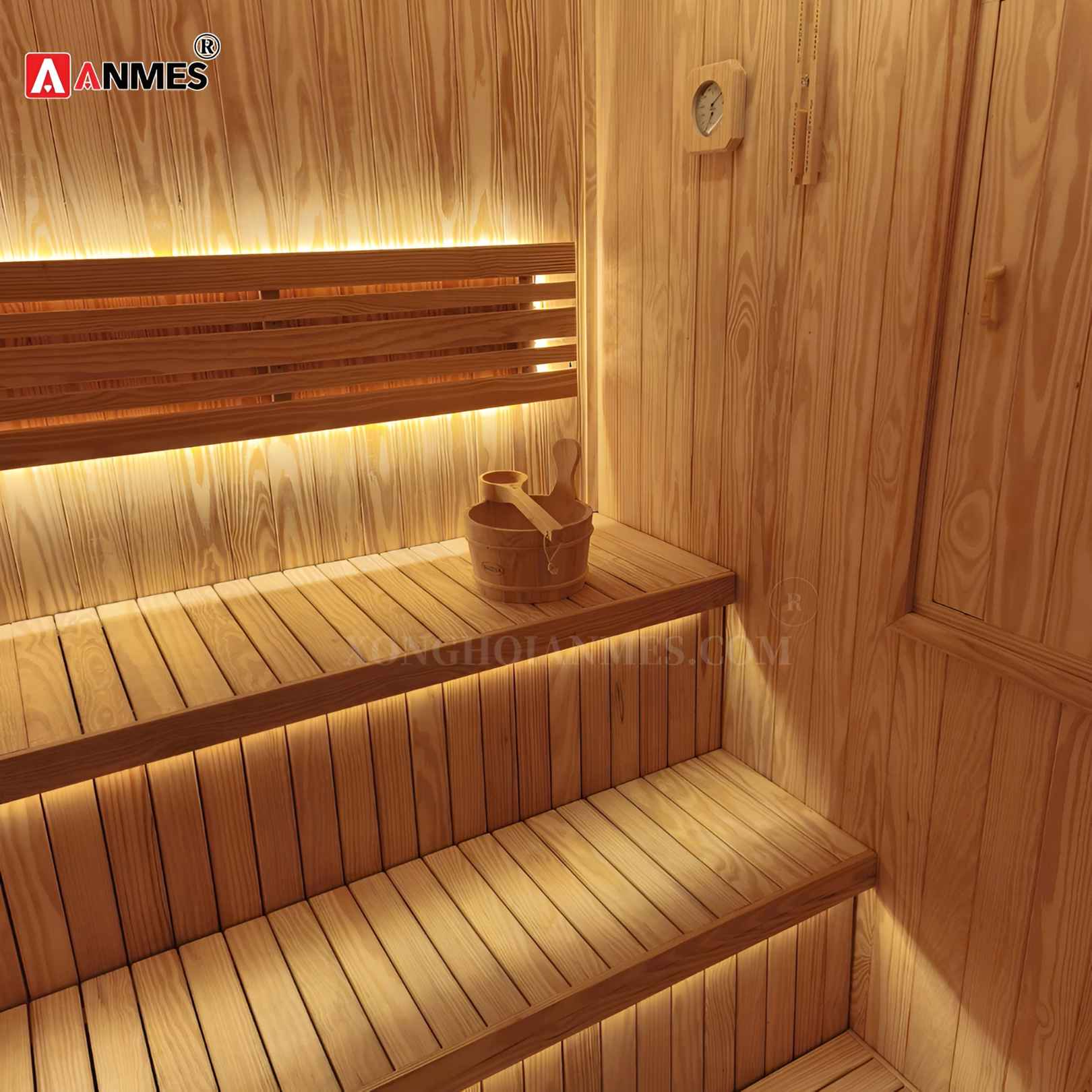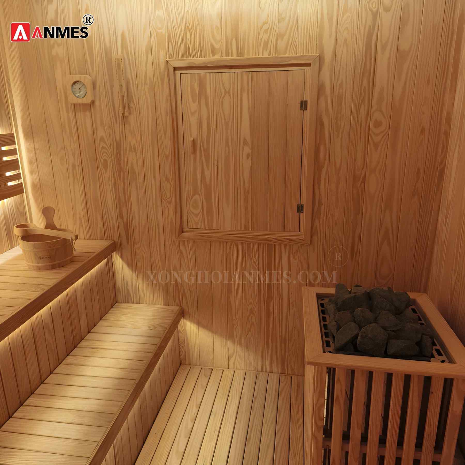 Hoàn thiện lắp đặt phòng xông hơi khô gia đình tại Vinhome Dragon Bay Hạ Long. Lắp đặt toàn bộ bằng gỗ thông Mỹ nhập khẩu, máy xông hơi khô Anmes. Hotline tư vấn 0941 20 6161 - 0911 96 6161.